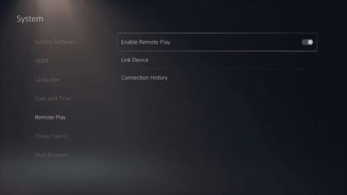 - لازم است ویژگی Remote Play را روی PS5 فعال کنید. برای این کار به قسمت System در Settings وارد شوید. با فشار دادن دکمه X کنترلر Remote Play فعال خواهد شد.